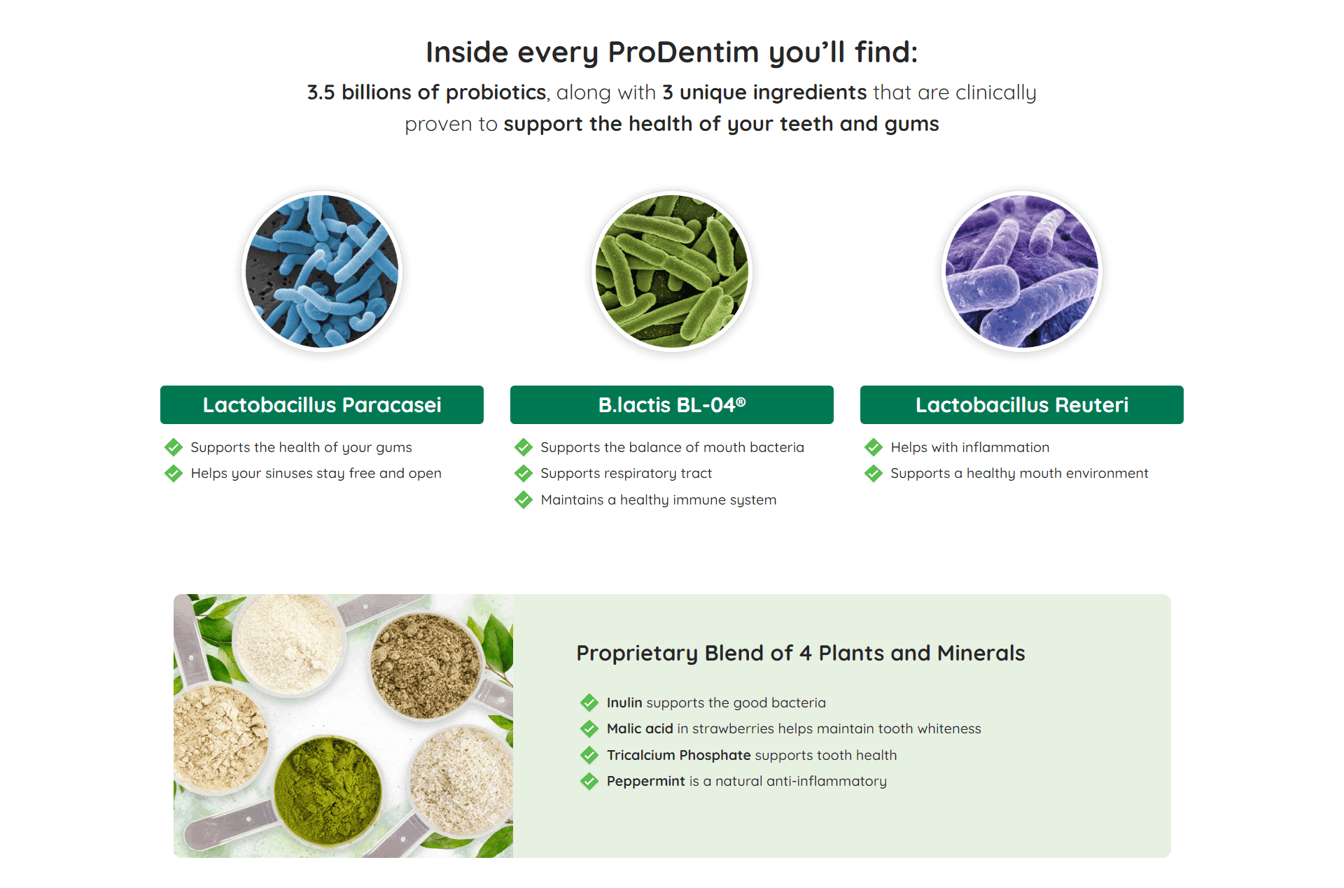 Prodentim is a natural dental support formula that has been specifically designed to promote and maintain optimal dental and oral health. It is composed of a unique blend of 3.5 billion probiotic strains and essential nutrients that have been clinically researched and proven to support the health of teeth and gums. This product aims to repopulate the mouth with good bacteria, thereby restoring the natural balance of the oral microbiome. By doing so, it helps prevent harmful bacteria from causing dental problems such as gum pain, inflammation, and bad breath. The formula is enriched with healthy strains of probiotics and essential nutrients that work together to improve oral health.